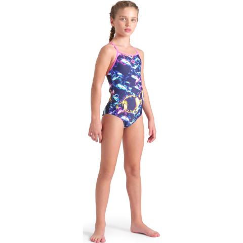 Feel-malliston joustava ja pehmeä uimapuku - kuin toinen iho! Puvussa on sirot olkaimet sekä ergonominen, pisaranmallinen selkäosa. Raikkaan näyttävä saippuakuplapainatus.