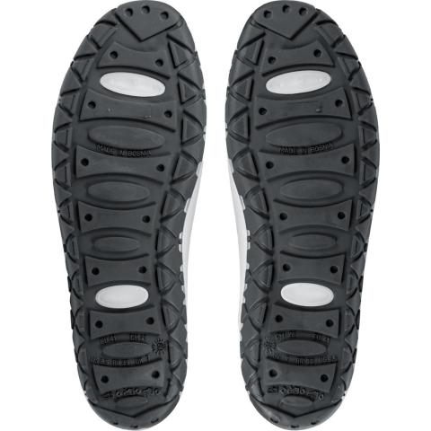 Kengän päällä ja sivuissa useita reikiä, joista kenkään tullut vesi pääsee valumaan nopeasti pois. Kenkä on joustavaa materiaalia ia helppo pukea jalkaan. Miellyttävän napakka mitoitus. Unisex-malli.