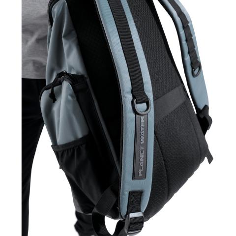 - Suuri Aquabreathe-etutasku vetoketjulla, joka on merkitty vesitippalogolla vetimessä. Aquabreathe-konseptin mukaan taskun sisäpuoli pitää vettä, joten tänne voi laittaa märät varusteet ilman, että muut tavarat kastuvat. Ulkopuolen yläosa hengittävää 3D-verkkoa