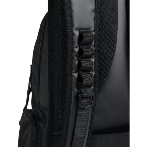 - Vetoketjullinen Aquabreathe-tasku edessä, joka on merkitty vesitippalogolla vetimessä. Aquabreathe-konseptin mukaan taskun sisäpuoli pitää vettä, joten tänne voi laittaa märät varusteet ilman, että muut tavarat kastuvat. Alaosassa hengittävää 3D-verkkoa.