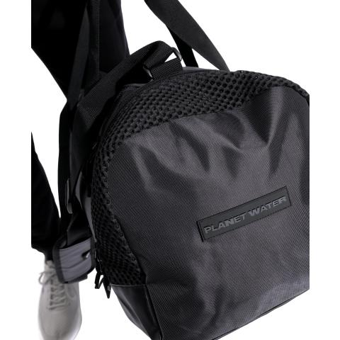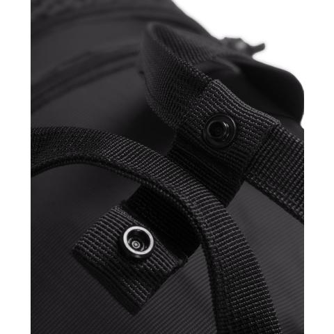- Laukun toisessa päädyssä on vetoketjullinen iso Aquabreathe-tasku, joka on merkitty vesitippalogolla vetimessä. Aquabreathe-konseptin mukaan taskun sisäpuoli pitää vettä, joten tänne voi laittaa märät varusteet ilman, että muut tavarat kastuvat. Taskun ulkopuolinen yläosa hengittävää 3D-verkkoa.