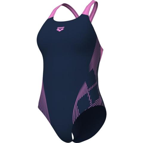 Naisten liivillinen uimapuku sivugrafiikalla ja MaxFit Eco -kankaalla. Tukeva Swim Pro selkäosa.