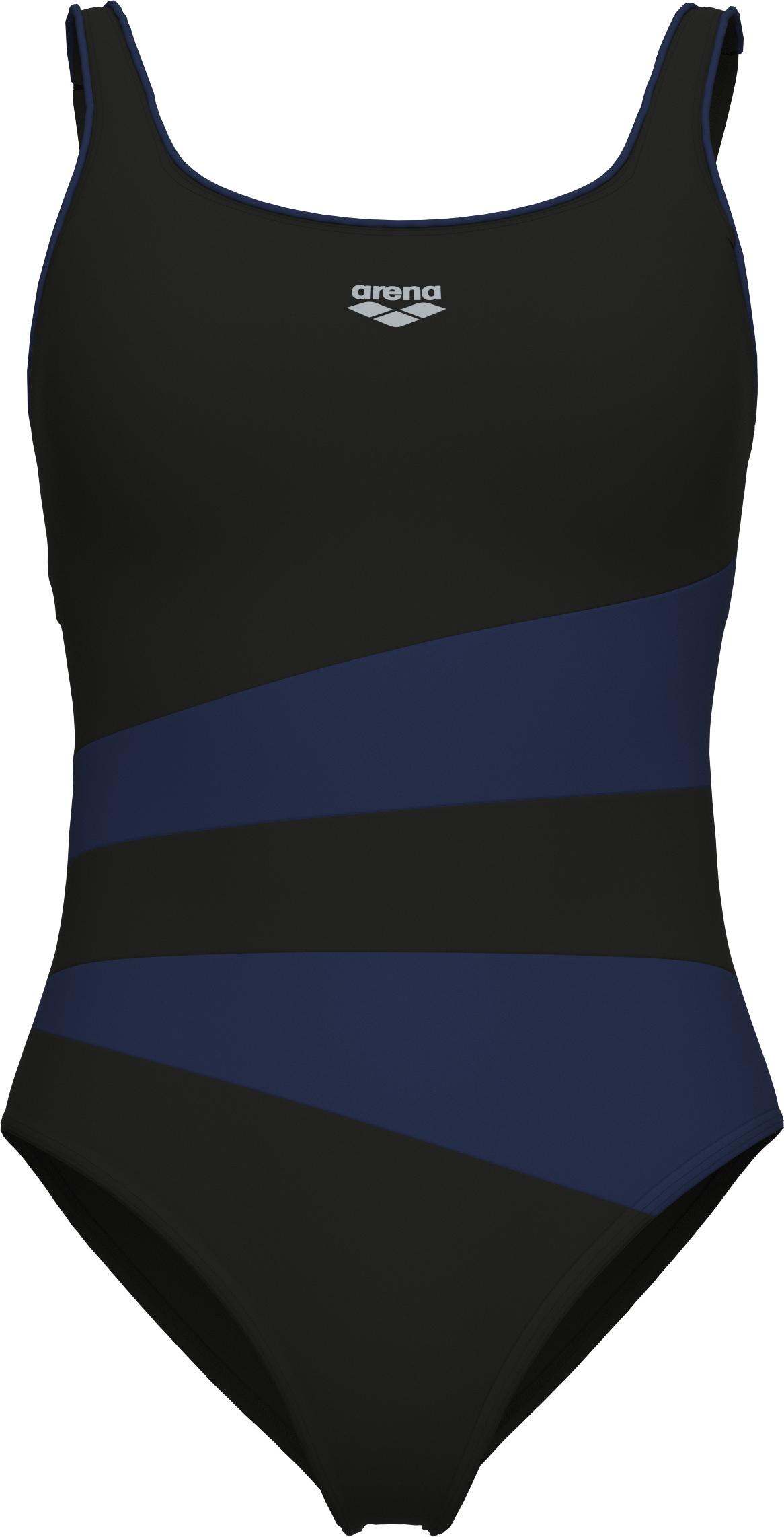 Tilavampi, erillinen liiviosa sekä leveä kuminauha rintojen alla tukevat povea. Leveät, säädettävät olkaimet ja umpinainen, hieman uurrettu selkäosa parantavat puvun istuvuutta. Matalat lahkeensuut lisäävät peittävyyttä. Uimapuvussa on kevyesti vatsaa litistävä kangas.