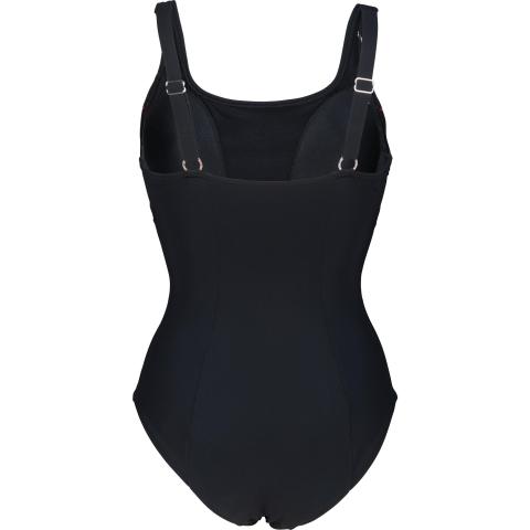 Sirot, säädettävät olkaimet sekä umpinainen selkäosa parantaa puvun istuvuutta. Olkaimet voi kiinnittää myös takaa ristiin. Muotoiltu, kaksinkertainen liiviosa sekä leveä kuminauha rintojen alla tukevat povea. Uimapuvussa on kevyesti vatsaa litistävä neulos. Lahkeensuu on toteutettu ilman hiertävää neulosta.
