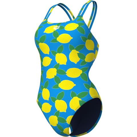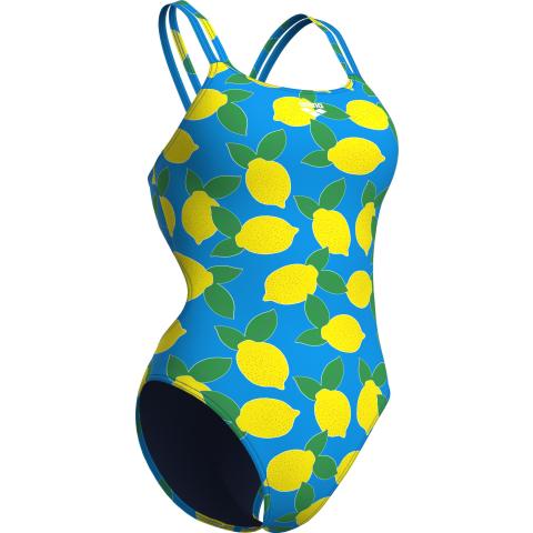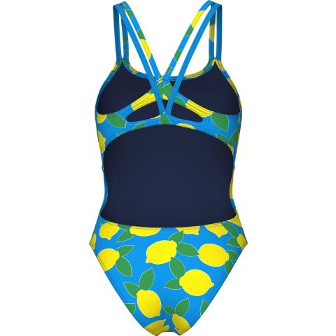 Sporttinen W Lemons Lace Plus Back -uimapuku aktiiviuimareille kestävästä Maxlife Eco -kankaasta. Kokoprintti sitruunakuviolla on Limited Edition- sarja.