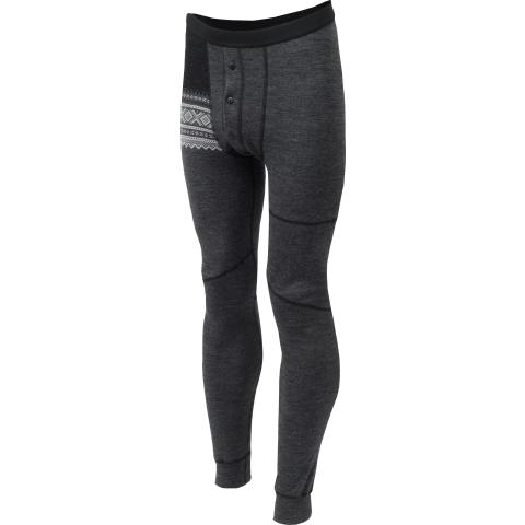 Acliman Designwool-sarjaan kuuluvat pitkät alushousut. Lämpimät housut ovat keskivahvan Warmwool-sarjan pehmeää 200g/m² merinovillaa. Sepaluksessa napit.