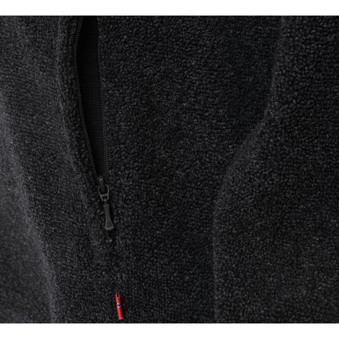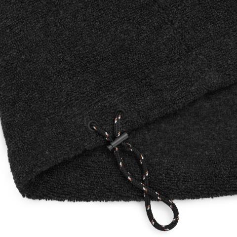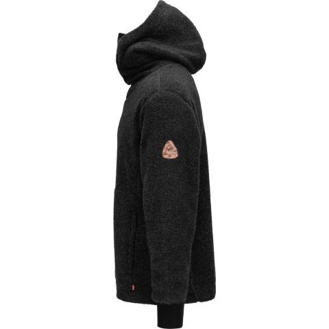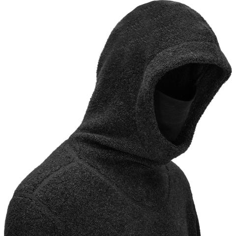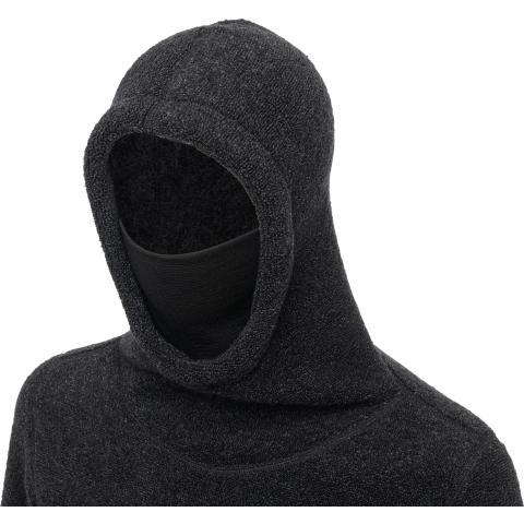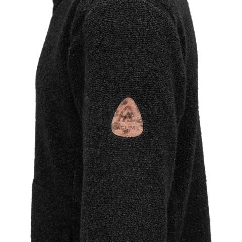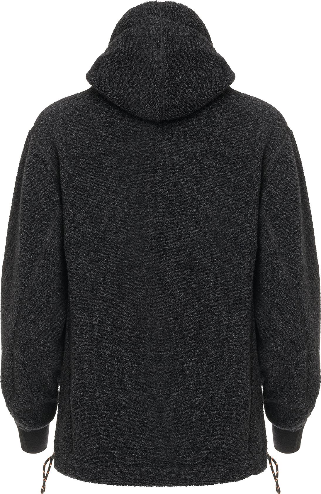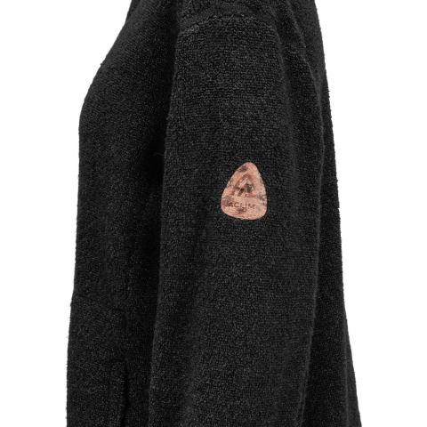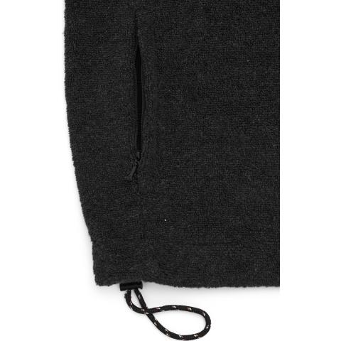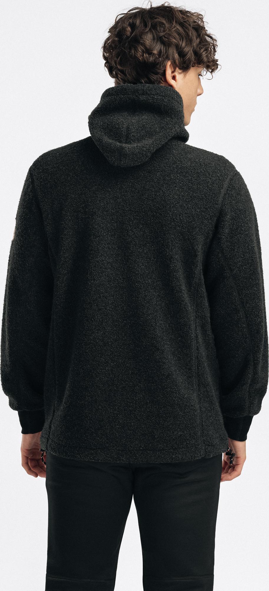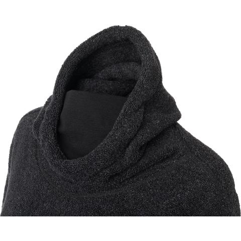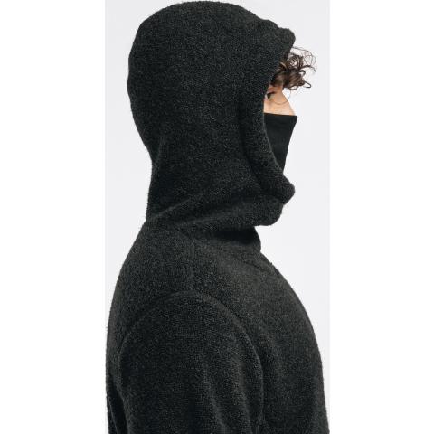 ReBorn Wool Terry on 62% kierrätettyä merinovillaa, 23% kierrätettyä polyamidia, 12% kierrätettyä polyesteria ja 3% muita kuituja. Kankaan ulkopinnan lenkit tekevät ilma-aukkoja ja tuovat erinomaista eristystä esim välikerroksena käytettäessä. Sisäpinta on kevyesti harjattua ja hyvin pehmeää. Vetoketju on kierrätetty ja vetimet sekä logomerkki ovat tehty kalannahasta.