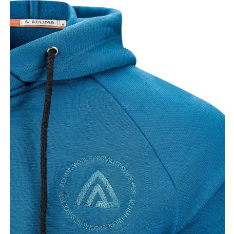 Miesten rento, äärimmäisen mukava, joustava ja lämmin villafleece- huppari. Sisäpuoli todella pehmeää harjattua villafleeceä. Logo rinnassa ja teksti Aclima, wool specialist since 1939. Huppu ja kengurutasku sekä nauhat hupun reunassa.