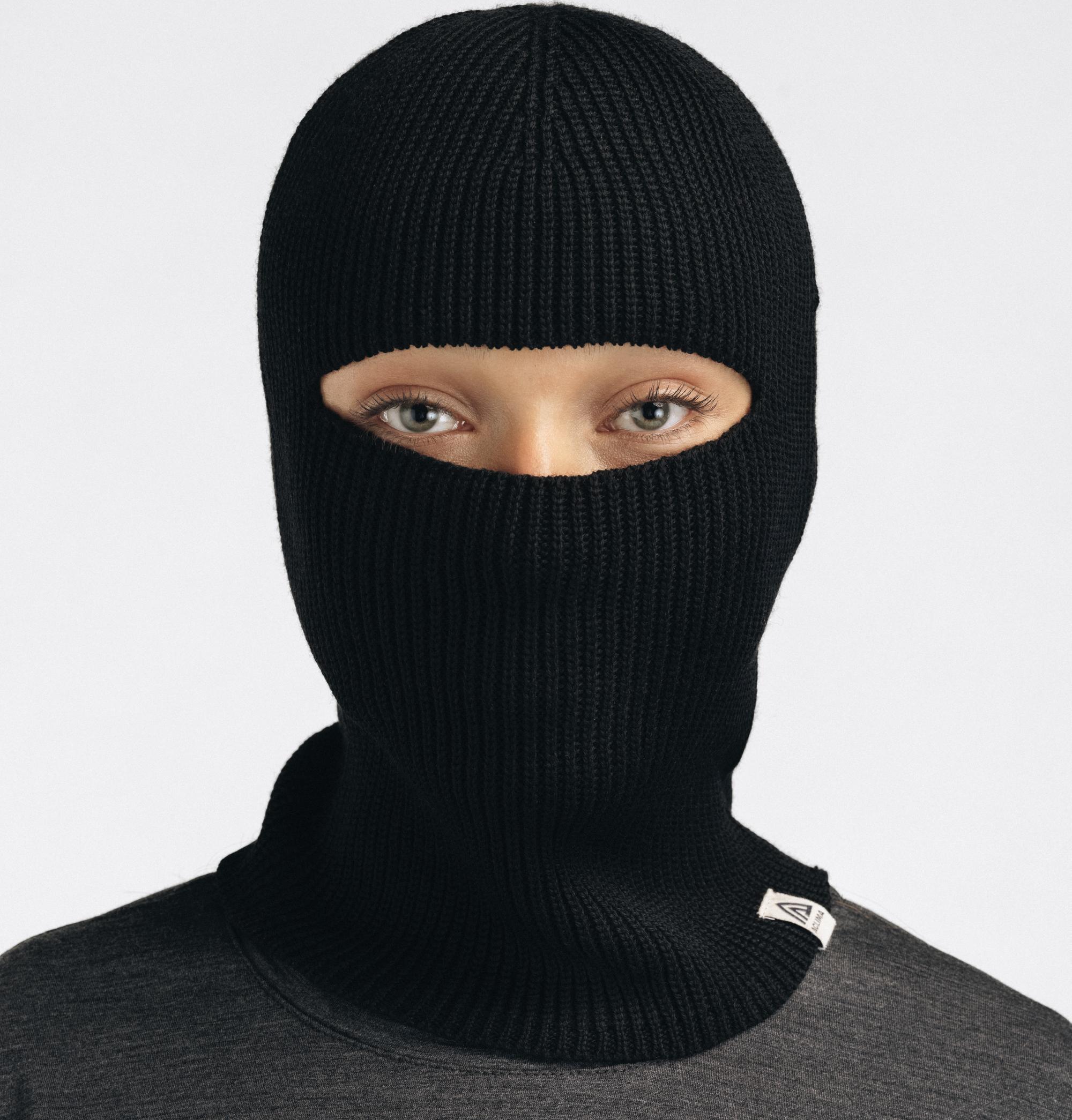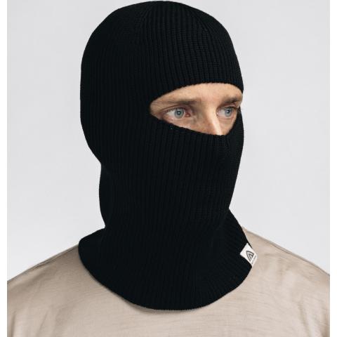 - Flat Knit Balaclava Hat U Jet Black Onesize