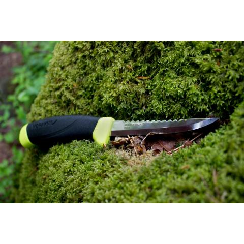 Monikäyttöisen terän materiaali kylmävalssattu ruotsalainen ruostumaton Sandvik erikoisteräs. Veitsen kuvioidusta kahvasta saa hyvän otteen myös märkänä. Vyöpidikkeellä varustettu muovituppi pitää veitsen tukevasti paikoillaan, säilyttää terän hyvässä kunnossa ja on helppo puhdistaa. Kokonaispituus: 214 mm. Terän pituus: 98 mm. Terän paksuus: 2 mm. Paino: 104 g.