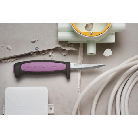 Kapean terän materiaali korkealuokkaisin ruotsalainen ruostumaton erikoisteräs. Pysyy terävänä 6-8x normaalipuukkoa pidempään ja kestää vääntämistä paremmin. Terän muoto on suunniteltu työkäyttöön antamaan paremman käyttökokemuksen ammattilaiselle. Kokonaispituus: 191 mm. Terän pituus: 75 mm. Terän paksuus: 2,0 mm. Kokonaispaino tupen kanssa 99 g. Musta hyvin suunniteltu muovituppi, jonka voi laittaa vyön lisäksi esim. nappiin ja rinnalle voidaan valita yksi tai useampia muita Morakniv ammattipuukkoja ja tupet voidaan niputtaa yhteen, jolloin kaikki työkalut on helposti saatavilla.