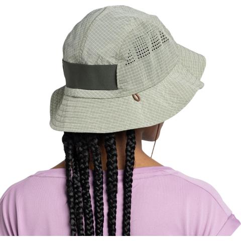 BUFF® Go Bucket Hat on miellyttäväntuntuinen, tekninen lierihattu. Hatussa on erittäin kevyt, kosteutta siirtävä ja nopeasti kuivuva kangas. Kankaan ripstop-rakenne parantaa lakin kestävyyttä. UV-suojattu kangas ja lakin lieri suojavat käyttäjää hyvin auringolta. Laserleikatut tuuletusaukot sivuilla viilentävät mukavasti. Joustavan hikinauhan ansiosta lakki istuu hyvin. Säädettävä kaulahihna pitää hatun päässä tuulisissakin olosuhteissa. Pakkautuu todella pieneen tilaan. Pieni ripustuslenkki takana helpottaa hatun ripustamista ja kuivattamista.