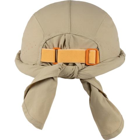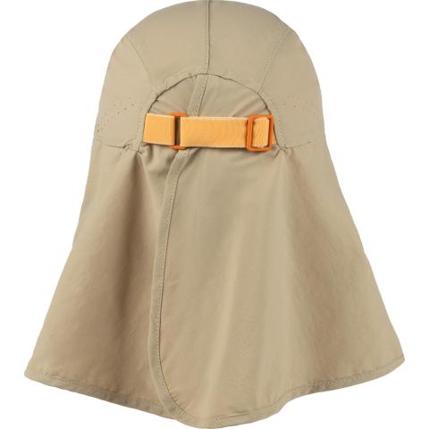Lippiksen 360° kangas suojaa niskaa ja kaulaa poikkeuksellisen hyvin auringolta. Kaksiosainen, lomittainen suojus parantaa ilman kiertoa kankaan alla. Kankaan voi pitää edestä kiinni tai napsauttaa nepparilla lippiksen taakse, jolloin aurinkosuoja on takana ja sivuilla. Kankaan voi myös rullata kokonaan ylös lippisen taa tai taittaa lakin alle piiloon.