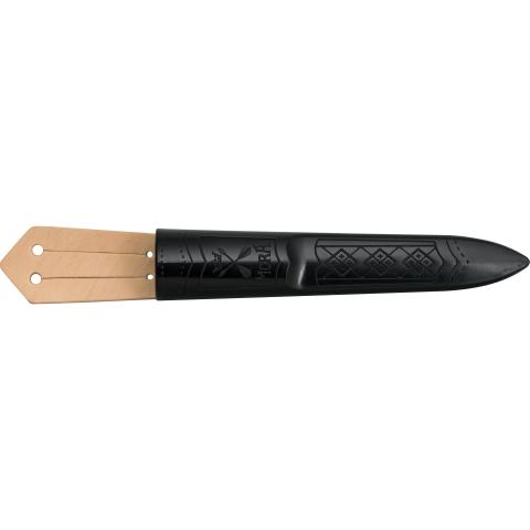Terän materiaali runsashiilinen teräs. eli terä on helppo teroittaa. Kokonaispituus: 204 mm. Terän pituus: 77 mm. Terän paksuus: 2,0 mm. Kokonaispaino 114 g. Puukon paino 55 g. Polymeerituppi nahkalenkillä sis. toimitukseen. Materiaali- ja valmistusvirhetakuu 10 vuotta. Valmistusmaa Ruotsi.