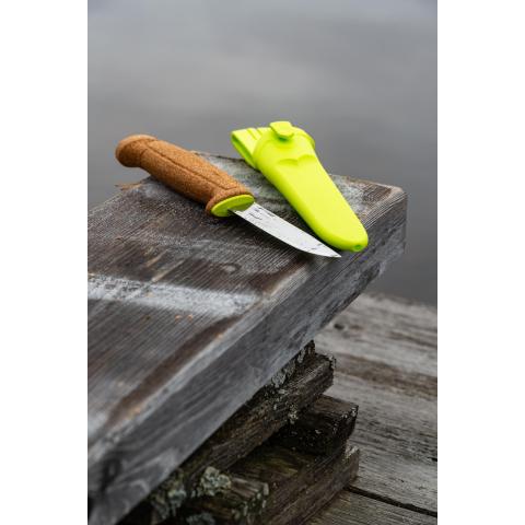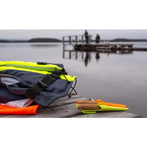 Kelluva sileäteräinen puukko offshore työkäyttöön, kalastusammattilaisille, pelastuskäyttöön, melojille, purjehdukseen, virkityskalastukseen ja muille jotka viettävät aikaa veden ääressä. Soveltuu monipuoliseen yleiskäyttöön. Kahvan ja tupen kirkkaan lime väri tekee havaitsemisesta helppoa. Esim. kalanviljelyaltailla uppoava puukko voi aiheuttaa huomattavia kustannuksia, joten kelluvuudella voi olla myös taloudellinen ulottuvuus.
