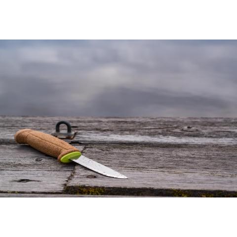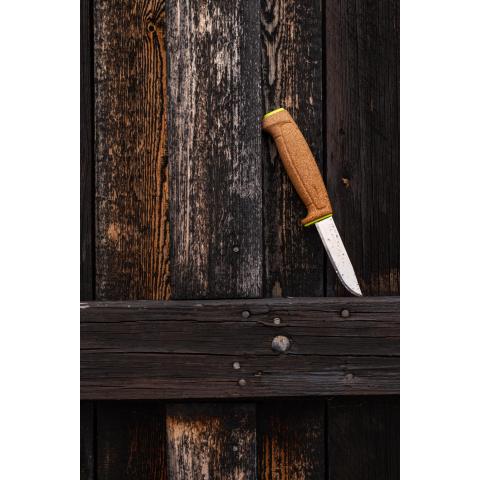 Korkista valmistettu kahva, jonka pinta tarjoaa miellyttävän otteen myös kylmissä oloissa. Terän materiaali kylmävalssattu ruotsalainen ruostumaton Sandvik erikoisteräs, eli pysyy erittäin terävänä pitkään. Kokonaispituus: 235 mm. Terän pituus: 97 mm. Terän paksuus: 1,4 mm. Puukon paino 79 g. Muovitupen pohjassa tyhjennysreikä ja ylhäällä vyökiinnike, jossa kiinnitysmahdollisuus myös nappiin. Tupen voi myös kiinnittää reppuun, pelastusliiveihin, tai liittää suoraan kaikkien Morakniv Combi Sheath tuppien kylkeen, jolloin kaksi työpuukkoa kulkee yhdessä mukana. Tupen materiaali: Polymer Edge Protect.