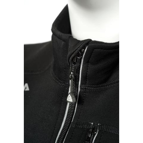 WoolShell on 300 g villafleece, jonka sisäpinta on villaa ja ulkopinta polyesteria. Villafleece pitää kehon lämpimänä ja kuivana, polyesteri suojaa lumelta tai sateelta. Erittäin joustava ja mukava materiaali talvella treenaamiseen. Heijastavat logot ja vetoketjut tuovat näkyvyyttä ja turvallisuutta.