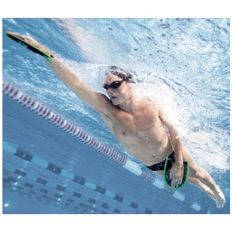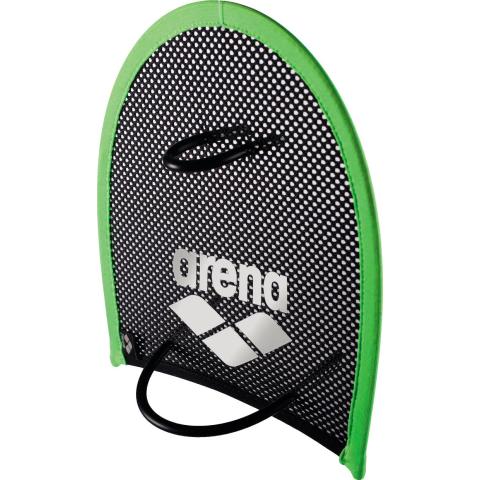 Arenan patentoima elastinen verkkorakenne antaa suuremman vastuksen, jolloin lättärin ei tarvitse olla ylisuuri kooltaan. Verkkomateriaali päästää veden osittain läpi, jolloin käden liikkeet ovat varmemmat eikä käsi lipsu sivulle.