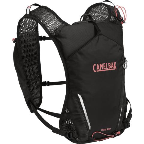 Naisten Trail Run Vest on erityisesti polkujuoksuun suunniteltu liivi, mukana tulevat kaksi 0,5l pehmeää juomapulloa.