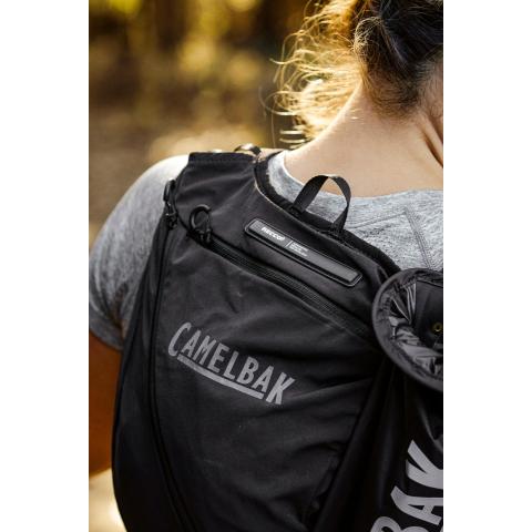 Selkäpuolella on kaksi tarvikeosastoa, josta toiseen voi halutessaan lisätä CamelBak Crux- tai Fusion- juomasäiliön (lisävaruste) ja toiseen tarvittavat lisävarusteet (juoksutakki, lisäenergia yms.). Tarvikeosasto aukeaa kätevästi kokonaan päältä repun yli jolloin pääset kätevästi käsiksi myös repun alaosaan pakattuihin tavaroihin.