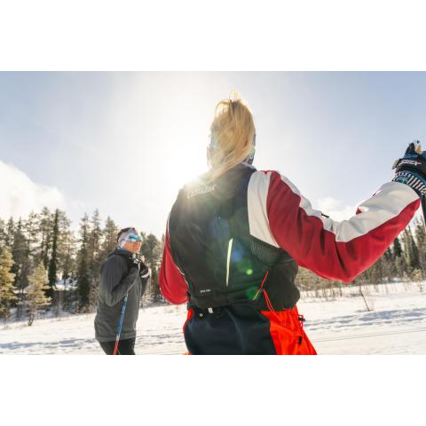 Tässä huippuluokan liivissä on ensimmäisenä mukana Recco heijastin/paikannin joka toimii vaikka lumivyöryn alle jäätyään ja helpottaa löytämään jos ihminen joutuu kateisiin (https://recco.com/technology/)