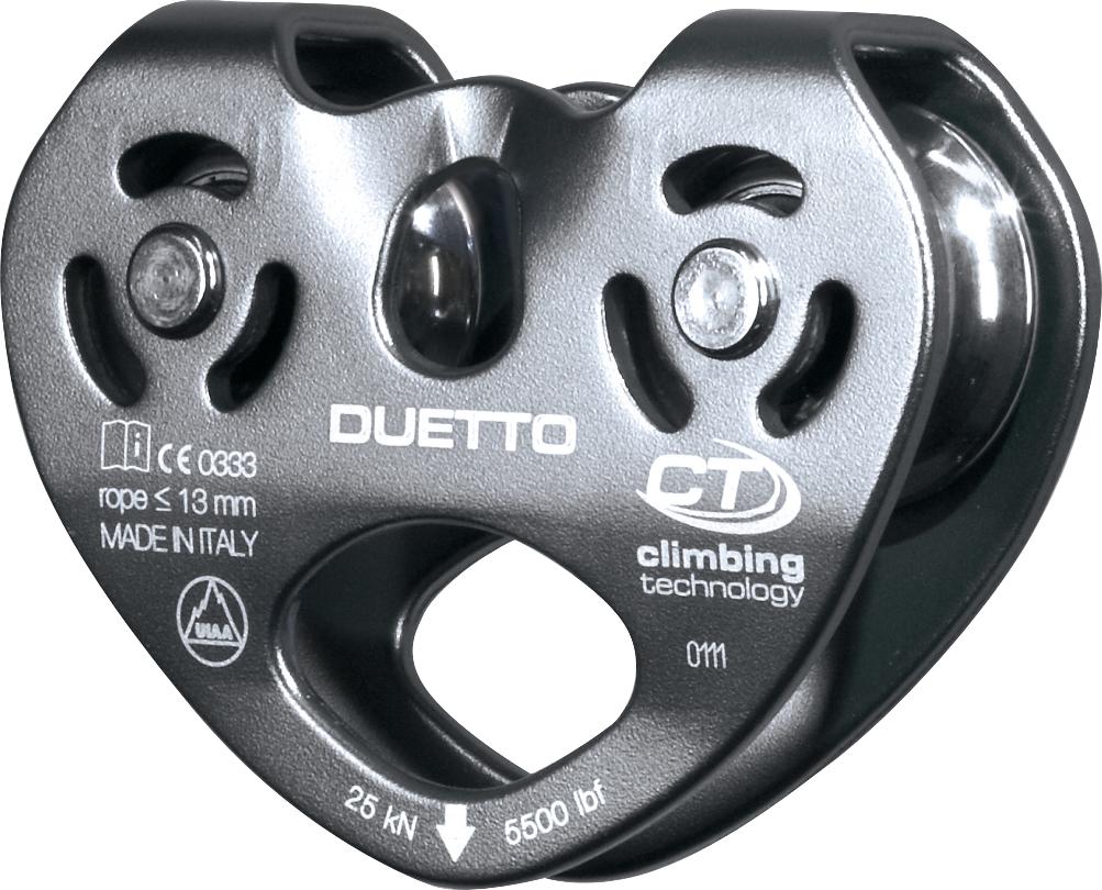 Alumiiniset korroosionkestoanodisoidut sivulevyt. Ruostumattomasta teräksestä valmistetut väkipyörät neljällä suojatulla, huoltovapaalla kuulalaakerilla, joilla saavutetaan erittäin suuri 90 % tehokkuus. Soveltuu käytettäväksi halkaisijaltaan enintään 13 mm köysien ja enintään 12 mm teräsvaijerien kanssa. Maksiminopeus 10 m/s. Murtolujuus: 25 kN (= 4 x 6,25 kN). Enimmäistyökuorma: 10 kN (= 4 × 2,5 kN). Mitat: 100 mm x 80 mm x 33 mm. Paino: 290 g. Sertifioinnit: EN 12278 ja UIAA. CE. Valmistusmaa Italia. Yksittäin testattu. Materiaali- ja valmistusvirhetakuu 3 vuotta. Maksimielinikä rajoittamaton.