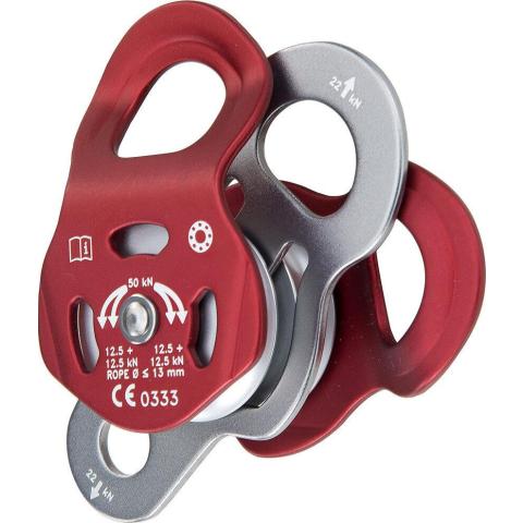 Alumiiniset korroosionkestoanodisoidut sivulevyt ja väkipyörät. Väkipyörissä suojattu huoltovapaa kuulalaakerointi, jolla saavutetaan erittäin suuri 96 % tehokkuus. Soveltuu käytettäväksi halkaisijaltaan enintään 13 mm köysien kanssa. Murtolujuus: 50 kN (= 4 × 12,5 kN). Enimmäistyökuorma: 12 kN (= 4 × 3 kN). Mitat: 137 mm x 70 mm x 55 mm. Paino: 310 g. Sertifioinnit: EN 12278 ja UIAA. CE. Valmistusmaa Italia. Yksittäin testattu. Materiaali- ja valmistusvirhetakuu 3 vuotta. Maksimielinikä rajoittamaton.