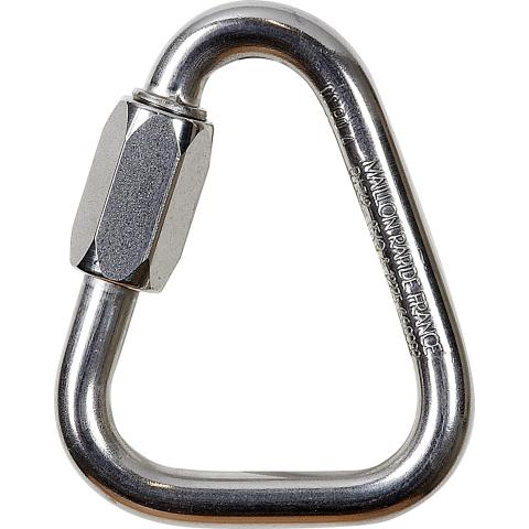 Ruostumattomasta teräksestä valmistettu kolmionmuotoinen ruuvilukitteinen teräksinen pikayhdistäjä pitkäaikaisiin kiinnityksiin, joissa halutaan estää kiinnityksen tarkoitukseton avaaminen. Soveltuu esim. työvaljaiden kahden kiinnityspistelenkin yhdistämiseen.