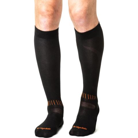 Tukevat kiristykset nilkan ja jalkapöydän ympäri pitävät sukan paremmin paikoillaan. Hieman ohuempi kiristys nilkan päällä muotoilee sukan jalkaan. Sukan suulla leveä kaksinkertainen resori.