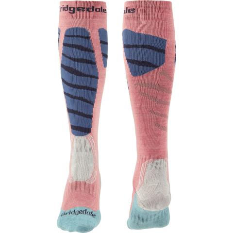 Pitkävartinen sukka lasketteluun aktiiviharrastajanaiselle. Muotoutuu todella hyvin jalkaan ja siirtää kosteuden tehokkaasti pois iholta. Varpaissa paksumpaa neulosta lämpimyyden säilyttämiseksi. Muu neulos ohuempaa. Nilkassa ja kantapäässä olevat neulokset helpottavat monoon jalkaan laittamista. Tukevat kiristykset nilkan ja jalkapöydän ympäri pitävät sukan paremmin paikoillaan. Pohkeessa lisäjoustoa antavaa neulosta. Sukan suulla leveä kaksinkertainen resori.