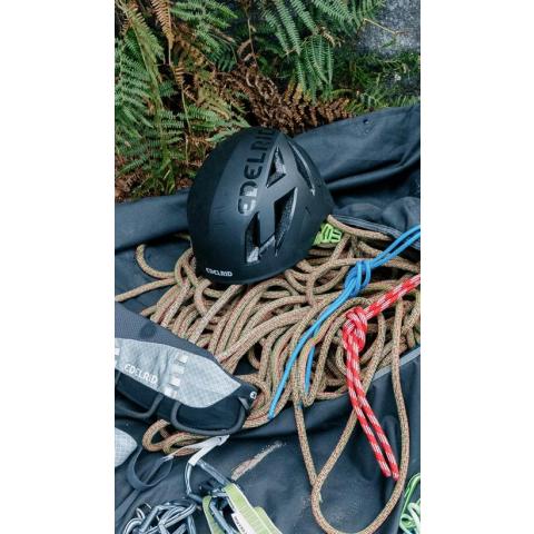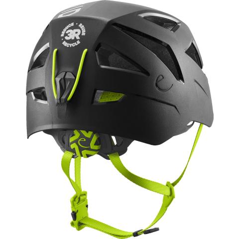 Hybridirakenne: EPS sisäkenno on kokonaan kierrätettyä materiaalia, ja Polyamidista valmistettu ulkokuori on valmistettu kokonaan kierrätetyistä kuiduista, jotka ovat Edelridin köysituotannosta syntyvää hukkaa. Kierrätetyn materiaalin käyttö ei heikennä suojaustasoa, erinomaista tuulettuvuutta, eikä käyttömukavuutta. Rakenne muodostaa yhdessä korkean suojaustason tarjoten erityisen kattavan suojauksen sivuilta tulevilta iskuilta. Moderni muotoilu, jossa tehokkaat tuuletusaukot, jotka pitävät pään viileänä.