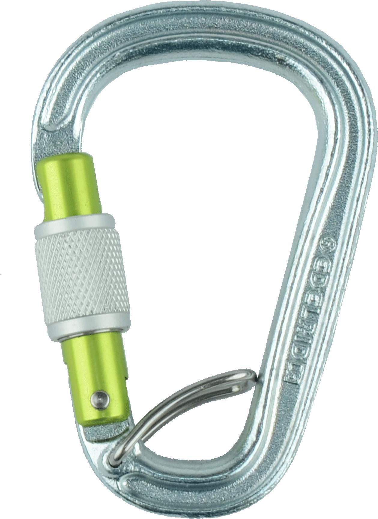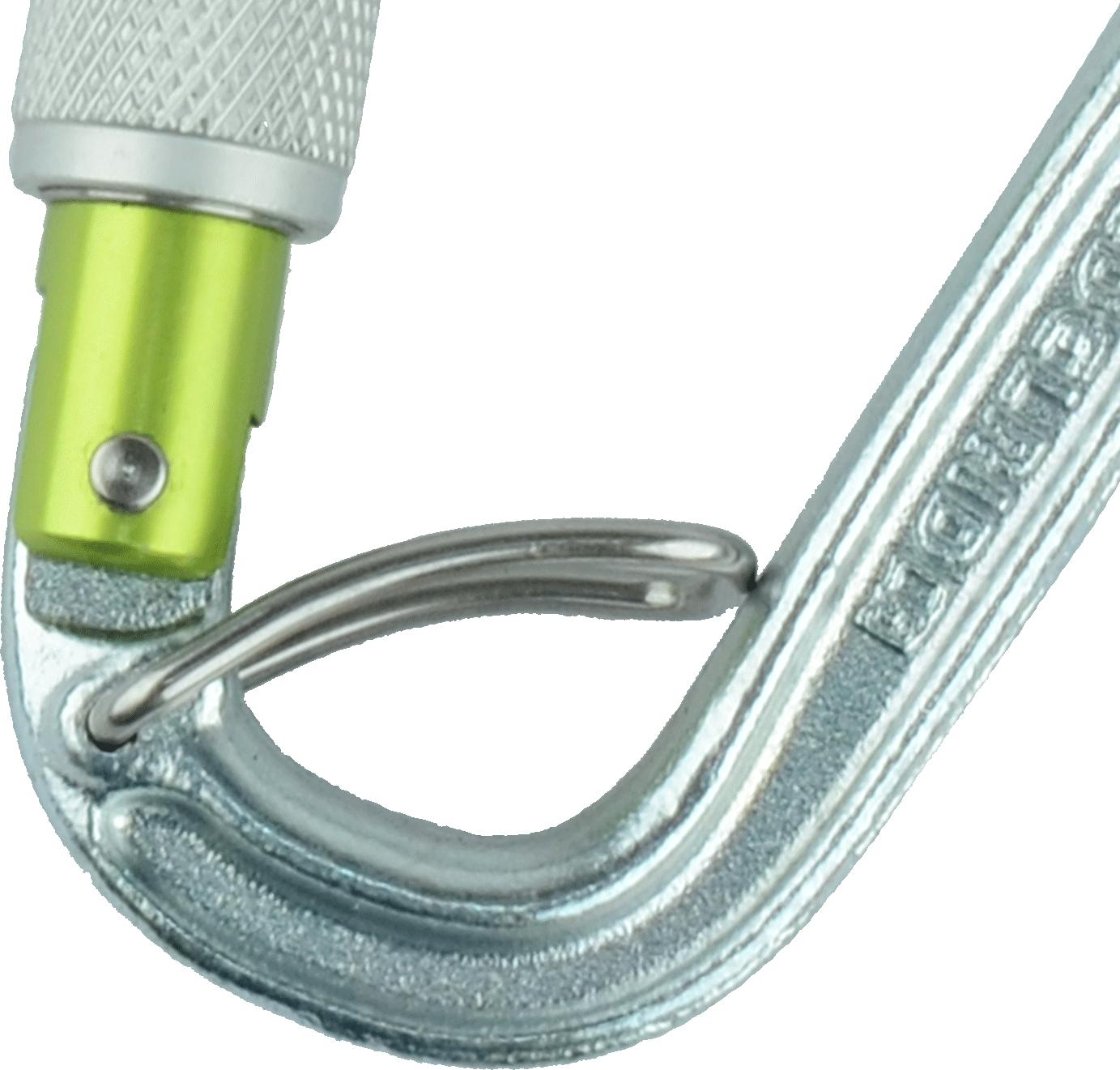 Teräksinen HMS sulkurengas ruuvilukitteisella portilla ja integroidulla asemointiportilla. Portin avauma 22 mm. Suunniteltu toimimaan täydellisesti yhdessä Edelrid Mega Jul varmistus- ja laskeutumislaitteen kanssa.