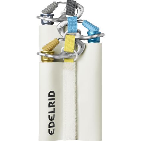 Kuljetus- ja suojapussi Edelrid Raya Lite jääruuville. Jääruuvi pysyy hyvin suojattuna tukevan pressukangasrakenteen ansiosta.