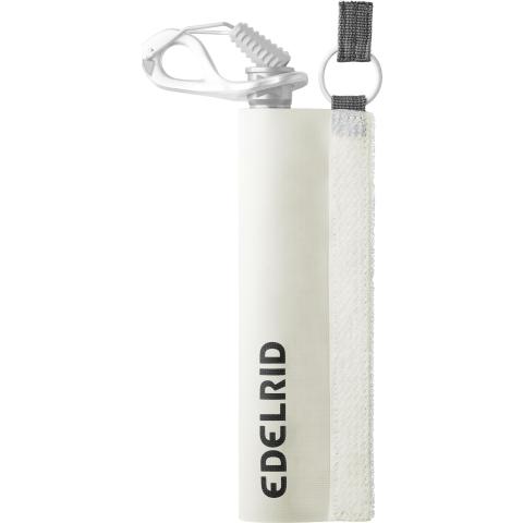 Kuljetus- ja suojapussi Edelrid Raya Lite jääruuville. Jääruuvi pysyy hyvin suojattuna tukevan pressukangasrakenteen ansiosta.