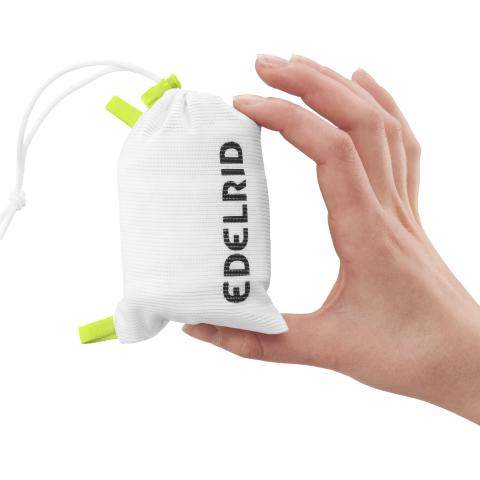 The lightest climbing harness on the market by far. With the LOOPO AIR, our developers demonstrate what is possible in terms of weight reduction and ultra-small pack sizes. The fully certified harness with two gear loops is as light as a feather, weighing just 49 g in size M, and can be folded to the size of a fist. The LightFrame design made of Dyneema® with two circumferential edge straps provides the necessary secure fit. Hybrid laminate made of polyester and Dyneema® as a carrier material enables even force distribution and a low weight. Ideal for ski touring and high mountain tours or as a sender harness for competitions, speed, or 9c+.