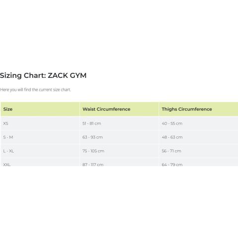 XS: Lantiovyö: 51-81 cm. Jalkalenkkien ympärysmitta: 40-55 cm