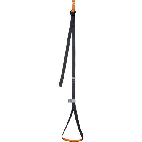 Jalan alla oleva hihna on hieman jäykkä ja leveä, jotta siihen astuminen olisi helpompaa ja käyttö olisi mahdollista myös molemmilla jaloilla samanaikaisesti. Liu’utettava kiristin, jolla lenkki saadaan pysymään jalkaterässä, ja sen saa liu’utettua säilöön kun sitä ei tarvita. Itsestään lukkiutuvan terässoljenansiosta helppo säätää oikean pituiseksi. Maksimipituus 125 cm. Toimitetaan ilman yläpään sulkurengasta. Maksimityökuorma 150 kg. Paino 85 g. Yksittäin testattu. Materiaali- ja valmistusvirhetakuu 3 vuotta.