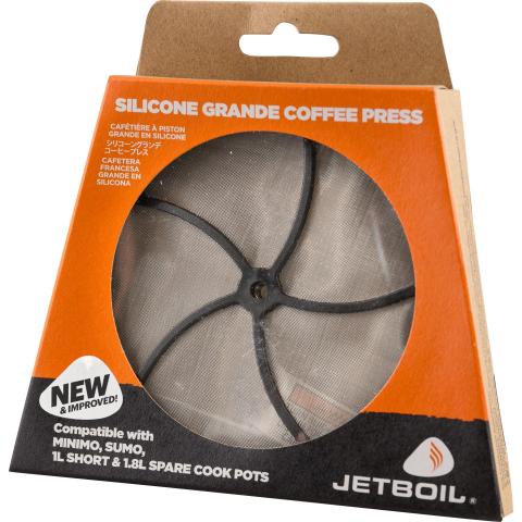 Jetboil Silicone Grande Coffee Press -pressopuristimella valmistat tuoreet kahvit missä tahansa muutamassa minuutissa ja voit nauttia ne suoraan keittimestä. Kahvinporot kiehuvaan veteen ja pressopuristimella suodatat nopeasti kahvit 1–5 henkilölle Jetboil-keittimelläsi. Purettavissa neljään osaan, jolloin voidaan kuljettaa keittimen sisällä ja kierretikku voidaan sujauttaa keittimen neopreenisukan sisään, jolloin keittimen sisältä ei liikuttaessa kuulu kolinaa.
