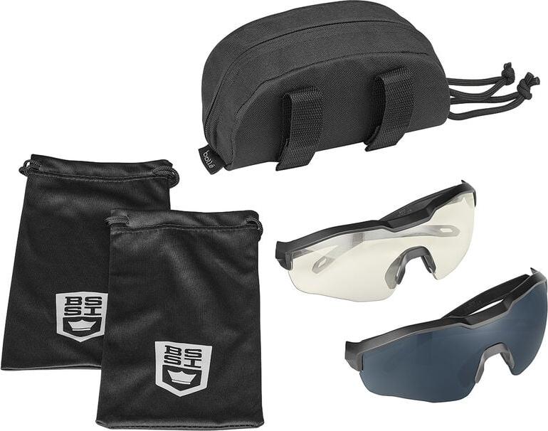 Ballistiset yksiosaisella monolinssillä varustetut suojalasit. Suunniteltu ammuntaan ja kriittisiin tilanteisiin. Pakkauksessa on kahdet sangat ja kaksi linssiä: Kirkas ja smoke tummennettu. Helppo vaihtaa käyttötarpeen mukaan soveltuen sisä- ja ulkokäyttöön.