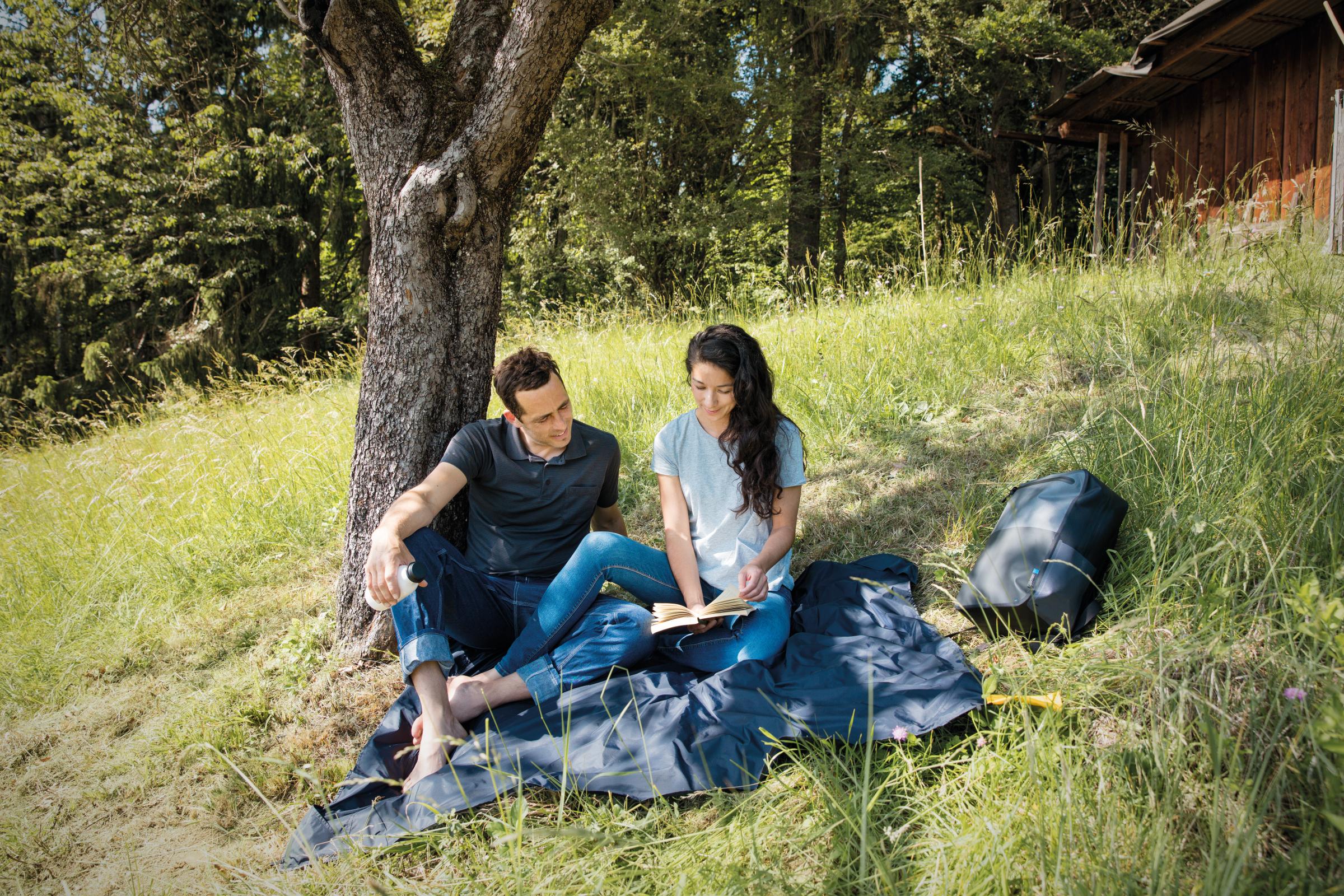 Erittäin kevyt ja pieneen pussiin pakkautuva monikäyttöinen picnic-alusta rannalle, festareille, konserttiin, retkeilyyn tai muuhun ulkoilmakäyttöön. Toimii tarvittaessa myös katoksena suojaamassa auringolta tai tuulelta. Materiaali: 20 denierin Ripstop Nylon, jossa PU-sively. Vesipilari 1000 mm, eli kangas pitää hyvin kosteutta.