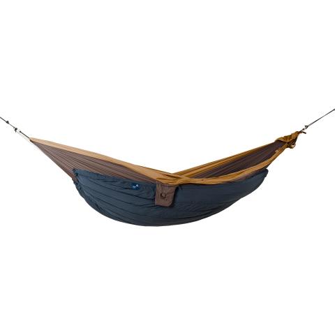 Moonquilt estää tehokkaasti kylmän tulemisen alapuolelta. Lämpimänä kesäyönä et juuri muuta tarvitse. Kiristyskuminauhojen avulla istuvuutta on näppärä säätää, ja vetoketju antaa 360° suojan. Karabiinihakojen ansiosta helppo asentaa riippumaton koukkuihin. Kompressiohihnoilla varustettuun kuljetuspussiin mahtuu myös riippumatto sisään, jolloin koko paketin käyttöönotto kestää vain muutaman sekunnin!