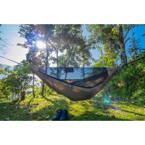 Hyttysverkon silmäkoko on 200 reikää / cm2. Pienetkään ötökät eivät pääse sen läpi, mutta ilma kulkee hyvin. Verkon ripustusnaru pitää myös itse riippumaton optimaalisessa muodossa (2,8 m +/-10 cm). Pakkauspussi toimii säilytyspussina ja sen saa nukkumisen ajaksi kiinni ripustusnaruun.