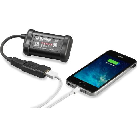 Adapteri, joka muuttaa Lupine-akun virtapankiksi. Voit ladata kännykän, tabletin tai minkä tahansa USB-laitteen suoraan Lupine-akusta.