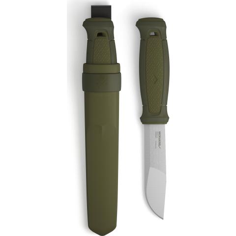 Bi-materiaalikahvassa yhdistyy kestävä muovi ja kylmässäkin miellyttävä pehmeämpi materiaali, ja se tarjoaa erinomaisen otteen. Terän materiaali erikoiskäsitelty ruotsalainen ruostumaton erikoisteräs, eli pysyy erittäin terävänä pitkään. Kärjestä ohueksi Scandi-profiilihiottu terä. Tupessa joustava vyölenkki, jonka renkaasta tupen voi puukkoineen vetää irti esim. autosta kauppaan mentäessä ja työntää takaisin palattaessa autolle. Kokonaispituus: 250 mm. Puukon pituus: 226 mm. Terän pituus: 109 mm. Terän paksuus: 2,5 mm. Puukon paino 106 g. Kokonaispaino 134 g.