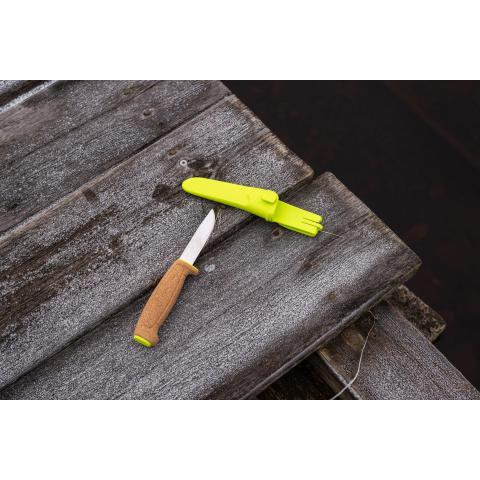 Korkista valmistettu kahva, jonka pinta tarjoaa miellyttävän otteen myös kylmissä oloissa. Terän materiaali kylmävalssattu ruotsalainen ruostumaton Sandvik erikoisteräs, eli pysyy erittäin terävänä pitkään. Kokonaispituus: 235 mm. Terän pituus: 97 mm. Terän paksuus: 1,4 mm. Puukon paino 79 g. Muovitupen pohjassa tyhjennysreikä ja ylhäällä vyökiinnike, jossa kiinnitysmahdollisuus myös nappiin. Tupen voi myös kiinnittää reppuun, pelastusliiveihin, tai liittää suoraan kaikkien Morakniv Combi Sheath tuppien kylkeen, jolloin kaksi työpuukkoa kulkee yhdessä mukana. Tupen materiaali: Polymer Edge Protect.