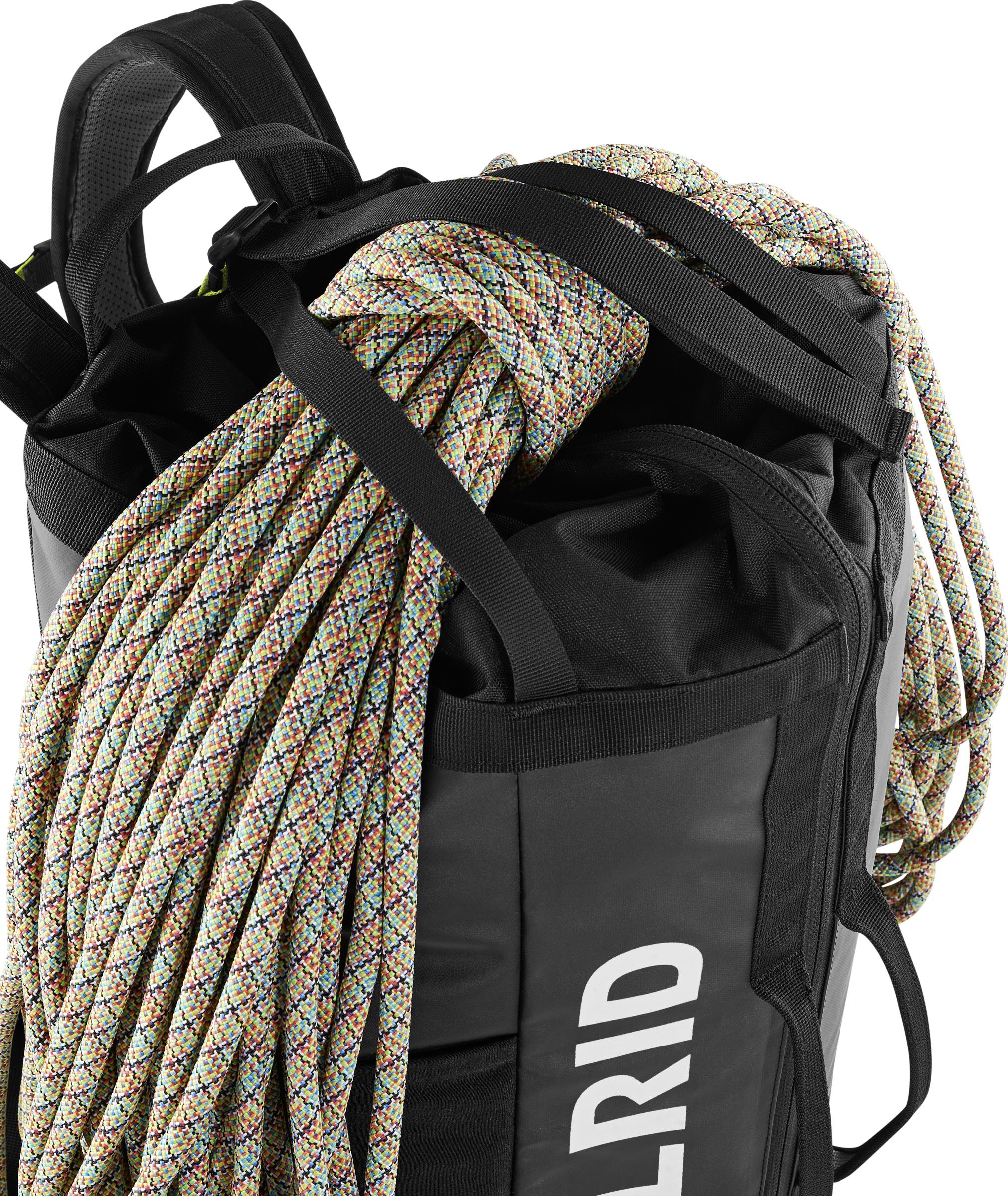 Jos PIT on täynnä varusteita, fifi-koukulla varustettu hihna mahdollistaa köyden kuljettamisen repun ulkopuolella.