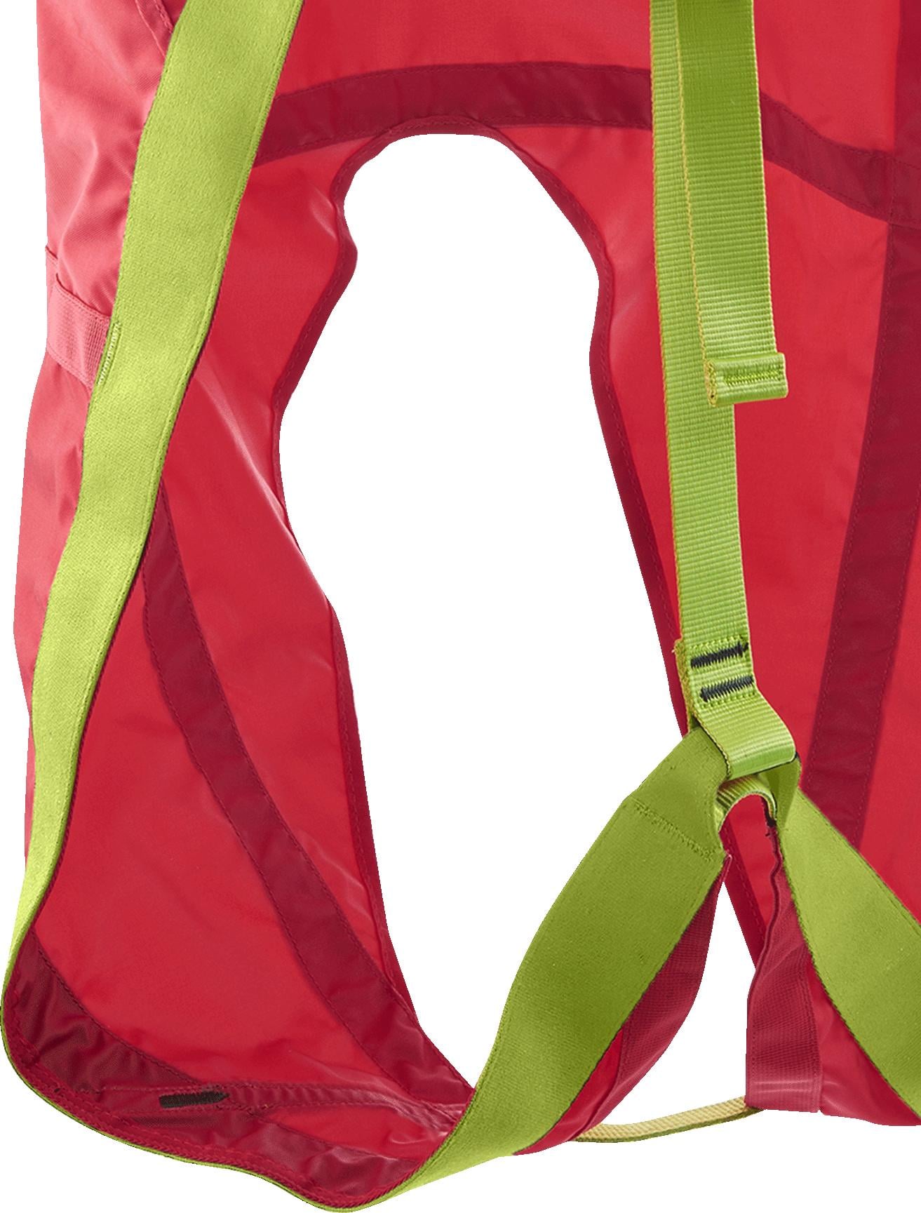 Helppo pukea myös istuvalle tai makaavalle potilaalle. Hihnat ovat nopeat ja turvalliset käyttää kolmetoimisten pikasolkien ja sujuvasti säätyvien automaattilukitteisten solkien ansiosta. Elastinen olkahihna, joka auttaa asettamaan valjaan hyvään asentoon ja myös pitämään sen siinä.