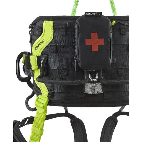 Erittäin kompakti vetoketjulla nopeasti avattava ensiapupakkauspussi liitettäväksi valjaisiin. Suunniteltu täydellisesti yhteensopivaksi Edelrid Treerex arboristivaljaiden kanssa. Velcro-kiinnityshihnat 2 kpl, pidikenauha, sekä tarvikenaru 6 mm 1m sisältyvät toimitukseen. Takapuolella integroituna 80 mm x 60 mm tarranauha-alue, jolla suora kiinnitttäminen Edelrid Tree Rex valjaiden lantiovuyön takan oleviin tarranauhoihin on nopeaa. Mainio tapa kuljettaa esim. kiristyssiteet ja laastarit mukana puidenhoitotyön aikana siten, että ne on nopeasti otettavissa käyttöön kun tarve tulee, eikä niitä tarvitse kaivaa mistään hankalasta paikasta esiin.