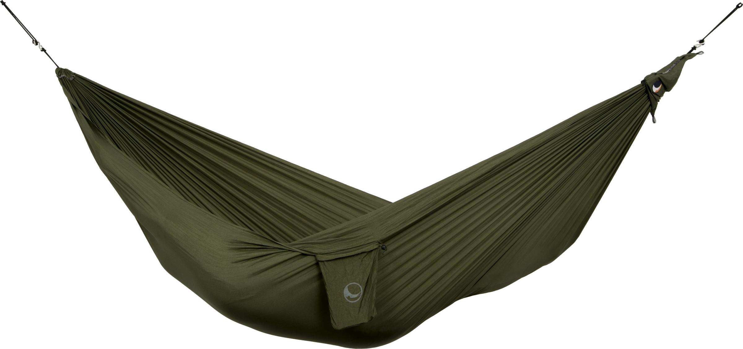 Alkuperäisvalmistajan Compact Hammock on entistäkin helppokäyttöisempi. Riippumatossa oleskelemisen lisäksi nyt myös asentaminen on hauskaa: Compact Hammock Express Setting Bag on uusi ratkaisu, jolla pääset kirjaimellisesti mukavuusalueelle käden käänteessä. Irrotettavan puolikuun muotoisen säilytyspakkauksen lisäksi Compact Hammockissa on nyt myös toinen, kiinteä suorakaiteen muotoinen tasku, johon riippumaton voi pakata. Tilaa riittää hyvin yhdelle henkilölle ja keveytensä ansiosta Compact Hammock kulkee helposti mukana.