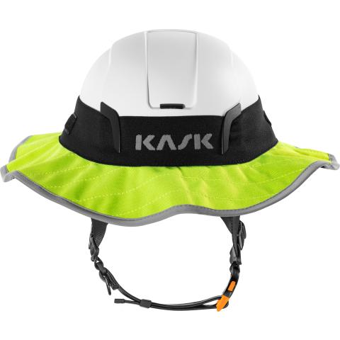 Aurinkolieri Kask työkypäriin. Suojaa käyttäjää kattavasti aurinkoisissa työolosuhteissa auringon haitalliselta säteilyltä, ja tekee työskentelystä miellyttävämpää ja vähemmän uuvuttavaa. Materiaalin jäykkyys suunniteltu toimivaksi myös tuulisissa olosuhteissa. Aurinkosuoja UVA/UVB UPF 50+.
